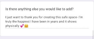 I want to thank you for creating this safe space, I'm truly the happiest I have been in years and it shows physically!