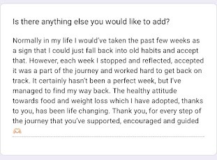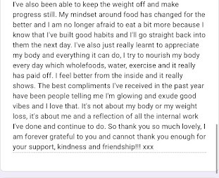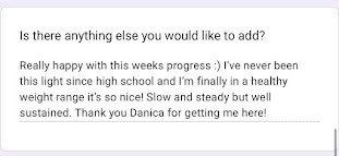 I can't believe I have lost that much and it hasn't evne felt like a chore at all! You seriously are a miracle worker and I can't thank you enough for getting me out of the slump I was in!