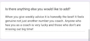 When you give weekly advice it is honestly the best! It feels genuine, not like i'm just another number.
