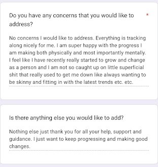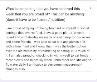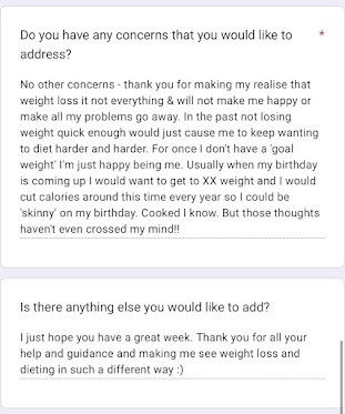 Weekly check-ins + food diary